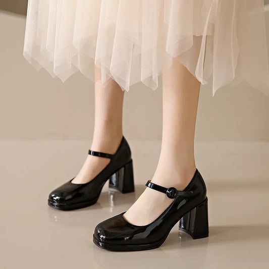 Fashion shallow mouth high-heeled women shoe 2022 spring new French retro thick heel small leather shoe all-match Mary Jane shoe